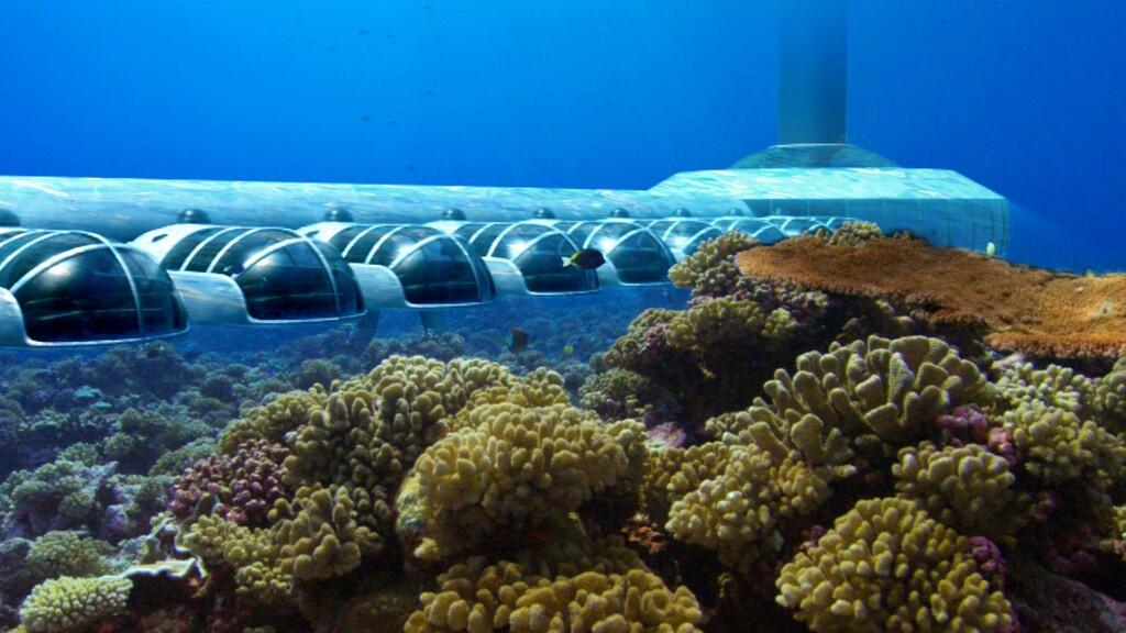 Hotel se vlastně skladá z malých prosklených částí, kajut, které jsou naskládané jedna vedle druhé a dohromady je jich asi 25. Zkoušela jsem najít, jak hluboko pod vodou se tento hotel nachází ... našla jsem, že je to dokolo 12m pod vodou (na jiných zdrojích je to až 30 metrů pod vodou, nevím co z toho je pravda xD). Nachází se na soukromém ostrově pojmenovaném Poseidon Mystery Island. Je to podlouhlý ostrov (asi kilák a půl dlouhý), obklopený lagunou. Řekla bych, že je to docela zajímavý ostrov ... obzvláště, když na něm najdete takový zajímavý hotel. Pokud chcete o tomto hotelu zjistit i něco více, strejda google Vám toho třeba prozradí i mnohem více xD